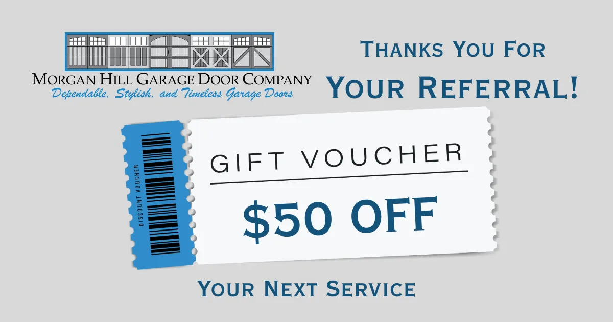 Referral Rewards are redeemable on all products and services provided by Morgan Hill Garage Door Company.